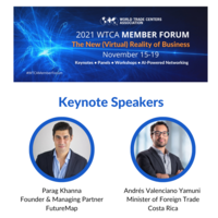 On November 15-19, the World Trade Centers Association (WTCA) hosted its third virtual global event, the 2021 WTCA Member Forum “The New (Virtual) Reality of Business,” bringing together nearly 600 attendees across 117 World Trade Center businesses in more than 50 countries and 27 industries around the globe, alongside renowned experts. The Forum offered a full week of virtual networking opportunities via a complimentary Artificial Intelligence (AI)-powered B2B matchmaking platform, and three days of programming filled with insightful keynotes, panel discussions and workshops allowing Members to connect with their global colleagues and learn from prominent thought leaders to help navigate today’s changing environment as we head into 2022.