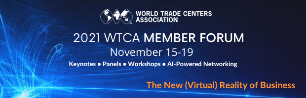 The 2021 WTCA Member Forum is one of the Association's flagship events, gathering representatives from member World Trade Center® businesses, as well as renowned experts. Programming for this virtual global event will consist of keynotes, panel discussions and workshops. Additionally, the event offers enhanced virtual networking opportunities via a complimentary Artificial Intelligence (AI)-powered B2B matchmaking platform.