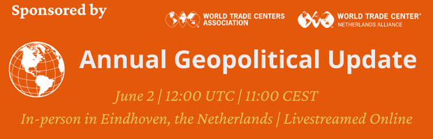 International trade is part of the DNA of the WTCA network. Recent global developments are constantly influencing international trade relations in substantial ways. The WTCA and the WTCA Netherlands Alliance of World Trade Center businesses invite all WTCA Members and their business networks the first annual Geopolitical Update on June 2 at 11:00-13:00 CEST, during which a new live site, the WTC Geopolitical Trade Index (WTC-GTI), will be unveiled.