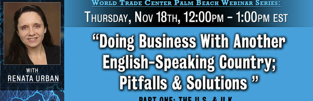 Join the World Trade Center Palm Beach for our next webinar in the International Business, Global Markets, and Intercultural Communication series featuring Renata Urban, founder of URBAN Training and Services and acclaimed Intercultural Coach, Communication Skills Trainer, and Language Teacher.Â