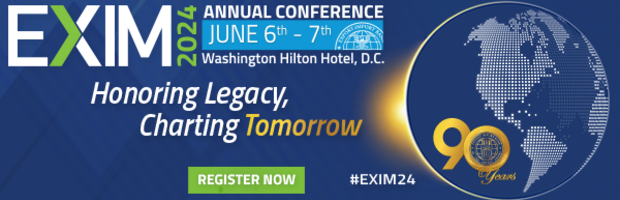 Attend the EXIM Bank’s 2024 Annual Conference, taking place on Thursday, June 6th and Friday, June 7th, in the heart of Washington, DC, at the Washington Hilton Hotel. The EXIM Annual Conference showcases the pivotal role of U.S. exports in driving economic prosperity, benefiting businesses of all sizes. The conference promises invaluable insights and unique networking opportunities for a diverse array of domestic and international attendees including exporters, buyers, financial professionals, business leaders from various sectors, and government officials. Reasons To Participate - Discover firsthand how EXIM fosters an equitable landscape for American businesses and how EXIM financing helps U.S. exporters expand globally. - Gain invaluable insights into available resources in key global markets and explore EXIM’s diverse range of financing tools to help win deals and grow your business. - Learn about the most important trends in trade and global finance from CEOs, industry and finance leaders, and government officials from the U.S. and abroad. - Receive exclusive access to interactive networking sessions with EXIM experts, other government agencies, and fellow attendees.Â