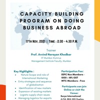 World Trade Center Bhubaneswar associated with Engineering Export Promotion Council of India for a Capacity Building Program on Doing Business structured under the Ministry of Commerce & Industry, Government of India. The session which focused on international marketing was facilitated by Prof. Arvind Narayan Khedkar, Management Institute Faculty, Mumbai. The session was organized in a hybrid mode.
