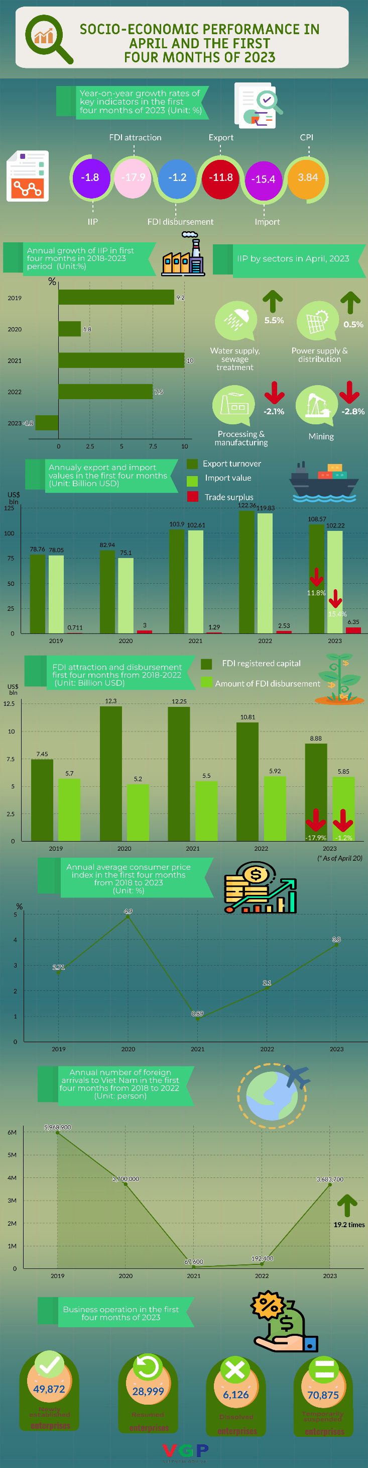 Below are key socio-economic indicators in the first four months this year.