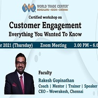 World Trade Center Chennai conducted a workshop ‘Customer Engagement – Everything you wanted to know’. Mr. Rakesh Gopinathan, Founder, Wowrakesh Academy, Chennai was the speaker at the programme. He described the various stages of customer journey. He spoke about how customer mindsets and expectations have changed over time. A great customer engagement plan begins with effective communication. A brand creation that a customer can relate to is also important. The values and ethics that the brand displays helps connect deeply with the customers. Periodical reminders to the customer about offers, newsletters etc. will also keep them engaged.