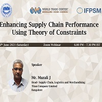 A webinar ‘Enhancing Supply Chain Performance Using Theory of Constraints’ was organized in association with Indian Institute of Materials Management Bangalore (IIMM). The session discussed how scarce resources could be utilized intelligently in order to maximize the performance of businesses. Mr. Mr. Murali J, Head– Supply Chain, Logistics and Merchandising, Titan Company Limited, Bangalore is the speaker.