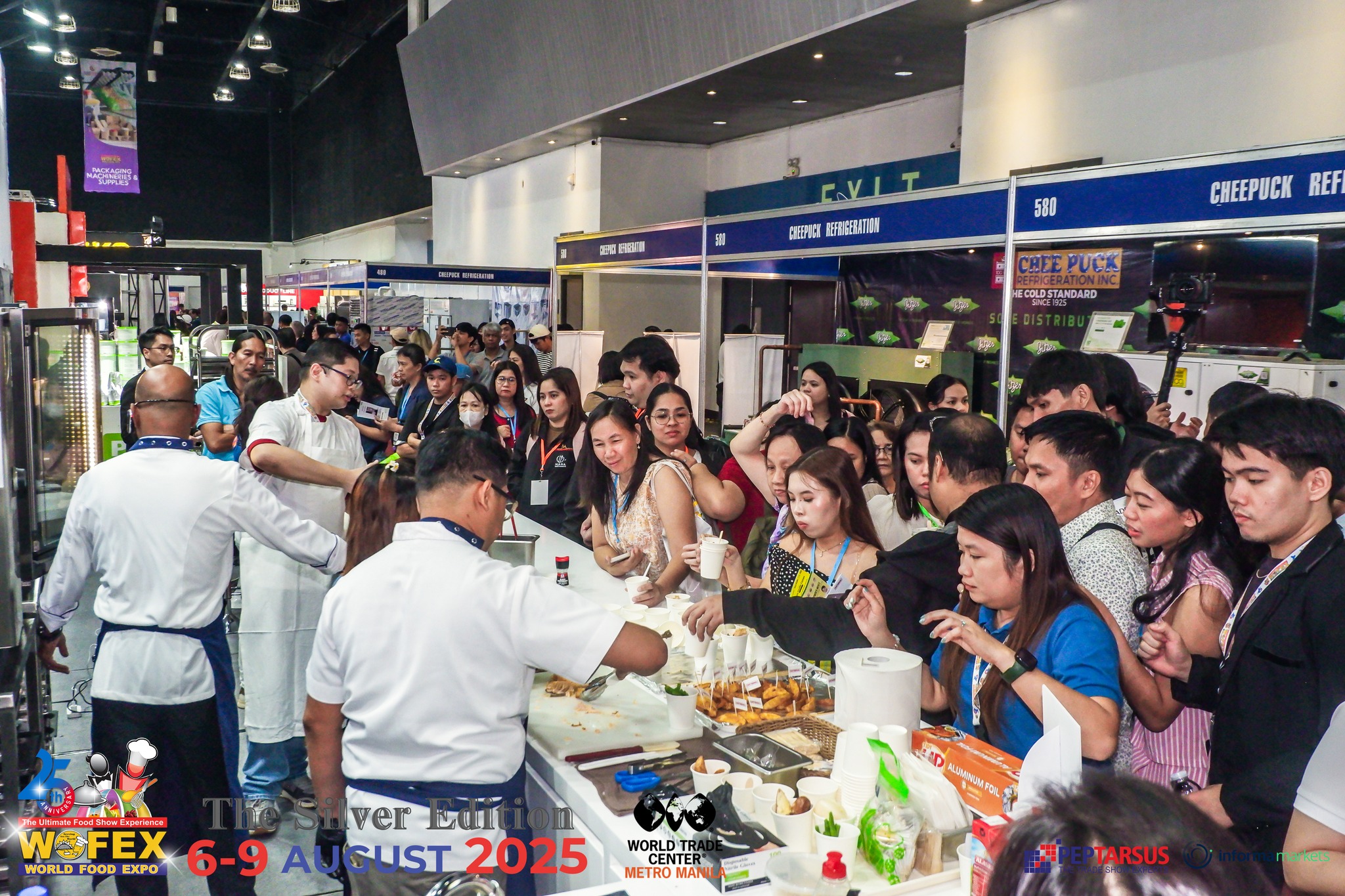 The World Food Expo (WOFEX) is the biggest food show in the country, with a wide array of products and services on display by major food and beverage suppliers. First-time exhibitors and new industry players. The food show also features side events such as baking demos, cooking demos, technical and business seminars. WOFEX also hosts the Philippine culinary competition endorsed by the World Association of Chef Societies (WACS), the Philippines Culinary Cup, which attracts world-renowned foreign judges and is participated in teams from different countries around the world.