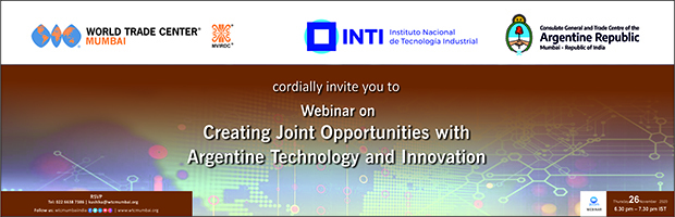 World Trade Center Mumbai in collaboration with the National Institute of Industrial Technology of Argentina (INTI) and the Ministry of Foreign Affairs, International Trade and Worship, Government of Argentina is pleased to invite you to a webinar on 'Creating Joint Opportunities with Argentine Technology and Innovation'
