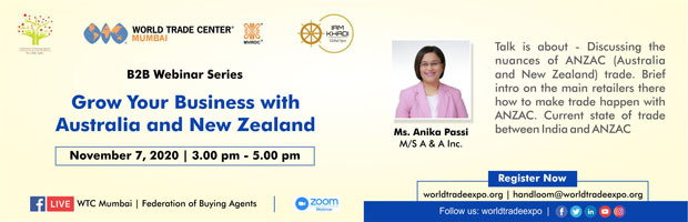 Speaker: Ms. Anika Passi from M/s A&A Inc., will provide insights on Growing business in Australia and New Zealand