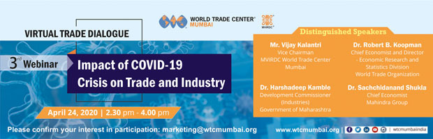 As part of the ongoing endeavour to facilitate trade and businesses at large, to steer past the COVID-19 crisis, MVIRDC World Trade Center Mumbai organised its 4th webinar on 'Impact of COVID-19 Crisis on Trade and Industry on April 24, 2020 from 2.30 pm - 4 pm.