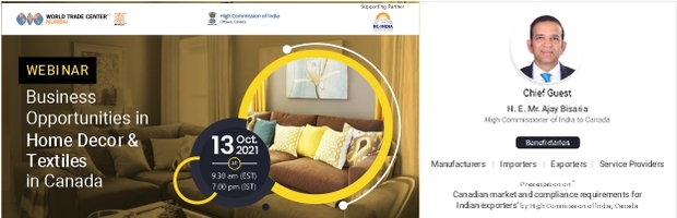 Jointly organized by World Trade Center Mumbai and High Commission of India in Canada, this webinar presents excellent opportunities for both countries and companies to extend co-operations to benefit SMEs. The highlight of this webinar is a presentation on ‘Canadian market and compliance requirements for Indian exporters’ by High Commission of India.