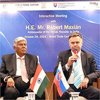 During the event, Mr. Maxian highlighted Slovakia’s achievements in green hydrogen technology for heavy vehicles and expressed interest in partnering with India on similar initiatives. He noted that trade between Slovakia and India has doubled to €861 million and aims to reach €1 billion. Additionally, he encouraged collaboration in film production, defence, and the automotive sectors, and invited Indian companies to invest in Slovakia, highlighting its strategic location within the Schengen Area.