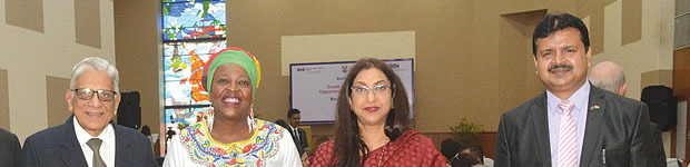 Ms. Maropene L. Ramokgopa, Consul General, Consulate General of the Republic of South Africa addressing participants. Seated (L-R): Ms. Rupa Naik, Senior Director, MVIRDC World Trade Center Mumbai, Mr. Thulani Mpetseni, Director, The Department of Trade and Industry, South Africa and Mr. Rajan Kumar, Advisor: Business Development, Consulate General of the Republic of South Africa.