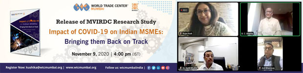 MVIRDC World Trade Center Mumbai released its research study titled ‘Impact of COVID-19 on Indian MSMEs: Bringing Them Back on Track’ which prescribed nine-point agenda to revive India’s MSME sector from the adverse impact of the spread of corona virus. The release of the study was at a time when the Reserve Bank of India and Government of India announced relief and economic measures which were part of the Atma Nirbhar package to combat disruptions in processes of businesses across sectors.