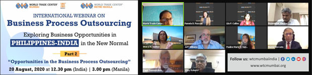 “India and Philippines have competitive advantage in the pharmaceutical and IT-BPM industries, respectively. The two countries can, therefore, have a thriving partnership in the Healthcare BPM market and it will be one of the focus sectors to be discussed at the meeting of the joint working group on trade and investment set up by India and Philippines, to be held in September 2020. The meeting can be a significant step towards signing of an FTA between the two nations,” said Mr. Eugenio C. Elevado, Jr., Commercial Counselor - Philippine Trade and Investment Center, Embassy of the Philippines, New Delhi at the International Webinar on ‘Exploring Business Opportunities in Philippines – India in the New Normal’ jointly organised by World Trade Center Mumbai and World Trade Center Metro Manila.