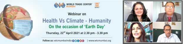 On the occasion of Earth Day, with the objective of creating awareness about the merits of having a symbiotic society, and maintaining a fine balance between mankind and Mother Earth, keeping in mind the theme of Earth Day for 2021 ‘Restore Our Earth’, World Trade Center Mumbai organized an interactive webinar on ‘Health Vs Climate - Humanity’ in association with C4 Integrated Wellness Pvt. Ltd.