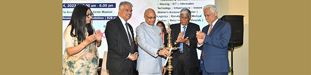 In Photo: H.E. Mr. Ramesh Bais, Hon’ble Governor of Maharashtra (3rd from left) lighting the lamp at the inaugural session of the World Trade Expo 2023. Also seen in the photograph are (from left to right): Ms. Rupa Naik, Executive Director, WTC Mumbai; Mr. Harjinder Kang, Deputy High Commissioner of British Deputy High Commission; Dr. Vijay Kalantri, Chairman, WTC Mumbai,and Capt. Somesh Batra, Vice Chairman, WTC Mumbai.