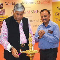 In Photo: Mr. Vijay Kalantri, Vice Chairman, World Trade Centre Mumbai lighting the lamp on the occasion of International Day for MSMEs. Also seen is Mr. Eknath Birari, Expert Consultant and Trainer in EXIM Finance.