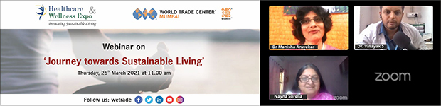 MVIRDC World Trade Center Mumbai organised an interactive webinar on âJourney towards Sustainable Livingâ on March 25, 2021 to create awareness about sustainable living through spiritual and traditional therapeutic techniques. The webinar offered a unique opportunity for the exhibitors of the Health and Wellness Expo, which is a unique digital initiative of World Trade Center Mumbai, to interact with prospective clients and stakeholders from the wellness industry