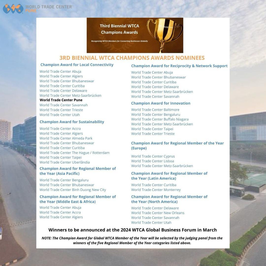 We are proud to share that World Trade Center Pune has been nominated for the 3rd Biennial WTCA Champions Awards in the category of Local Connectivity.