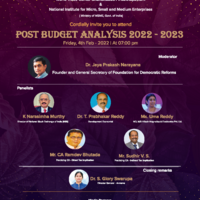 WTC Shamshabad, the first operational World Trade Center in Telangana & WTC Visakhapatnam, has organized a Post Budget Analysis: 202 - 2023 in collaboration with the National Institute for Micro, Small and Medium Enterprises (An Organization of the Ministry of the MSME, Government of India). The Hans India, HMTV and BizzBuzz were the media partners for the event. The panelists for the session are Dr. Jaya Prakash Narayana former bureaucrat and Founder and General Secretary of Foundation for Democratic Reforms and other panelists are Dr. T. Prabhakar Reddy - Development Economist, Ms. Uma Reddy – Founder Hitech Magnets, CA Ramdev Bhutada - Practicing Charted Accountant in Direct Taxes and CA V.S. Sudhir, Practicing Charted Accountant in Indirect Taxes have addressed the members.Â
