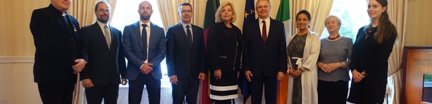 Fr. Egidijus Arnasius, Ramunas Zymantas, Darius Kazakevicius, Antanas Gedvilas, Maureen Pace, Ambassador Meilūnas, Rani Dabrai, Ambassador of Ireland to Lithuania 2010-2014 Philomena Murnaghan, Maria Kinsella.
