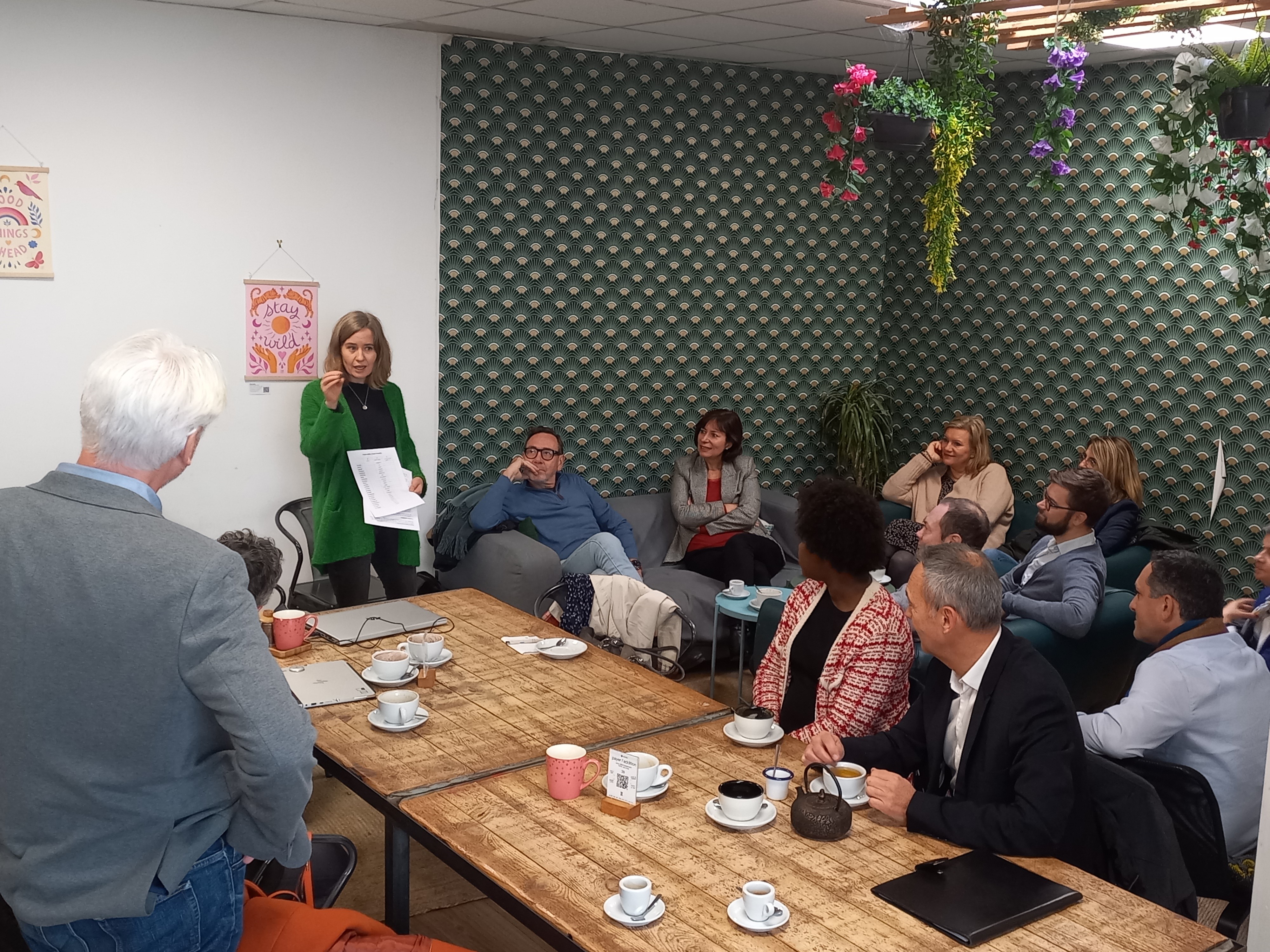 Members talking professional English with our 2 teachers Georgina and Moira
