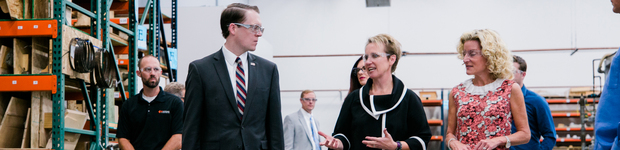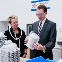 Pictured: David Glaccum, Associate Administrator for the Office of International Trade at the U.S. Small Business Administration, pictured with STEP Grant recipient Kaddas Enterprises CEO Natalie Kaddas at the company’s facility in Salt Lake City, Utah.