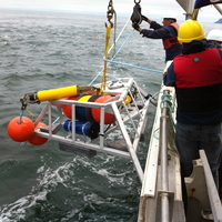 PHOTO: An acoustic Doppler current profiler deployment by Fundy Ocean Research Center for Energy, Canada’s leading research center for in-stream tidal energy. The instrument can be used to measure the direction and speed of rushing water. (Photo Credit: Fundy Ocean Research Center for Energy)