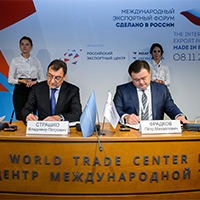 MOSCOW, RUSSIA - World Trade Center Moscow signed an agreement on cooperation with Russian Export Center (REC) on November 8th, 2016 in the framework of the "Made in Russia" International Export Forum, which was held in the WTC Moscow Congress Center.