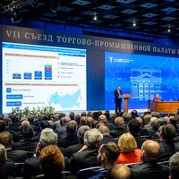 MOSCOW, RUSSIA - The Congress of the Chamber of Commerce and Industry of the Russian Federation took place at the World Trade Moscow on March, 1st. The Congress delegates summed up the results of the CCI for the period after the 6th Congress which was held on March 4, 2011, and discussed key activities of the Chamber for 2016–2020. Russian President Vladimir Putin took part in the Congress.
