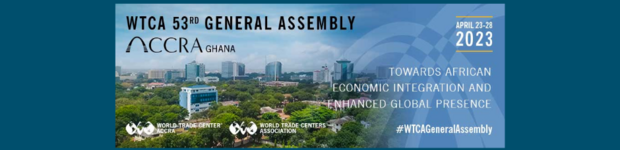 New York, NY (April 3, 2023) — The World Trade Centers Association® (WTCA®) — an international trade organization connecting more than 300 World Trade Center® (WTC®) locations in nearly 100 countries — and World Trade Center Accra will host the 53rd annual WTCA General Assembly (GA) in Accra, Ghana from April 23-28. This will be the WTCA’s first in-person GA since 2019 and the first to be held in Sub-Saharan Africa.